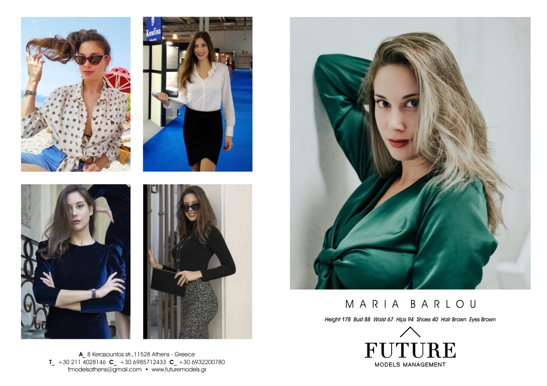 Υψος 1,76 Στήθος 85 Μέση 69 Περιφέρεια 92 Παπούτσι 40 Μάτια Καστανά Μαλλί Καστανό